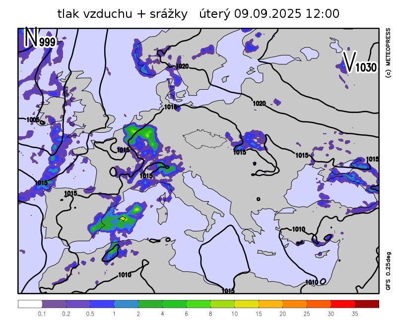 Počasí ve střední Evropě začne ovlivňovat brázda nízkého tlaku vzduchu od jihu.