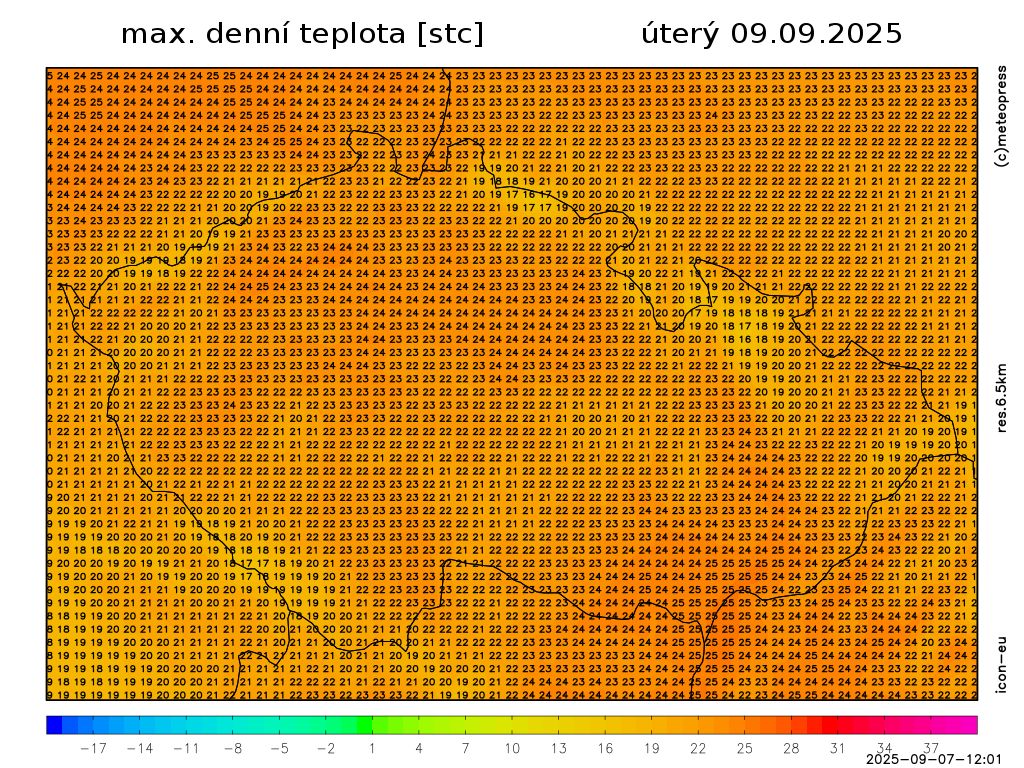 Nejvyšší denní teploty vystoupí na 21 až 25 °C. Foukat bude slabý až mírný jihovýchodní vítr.