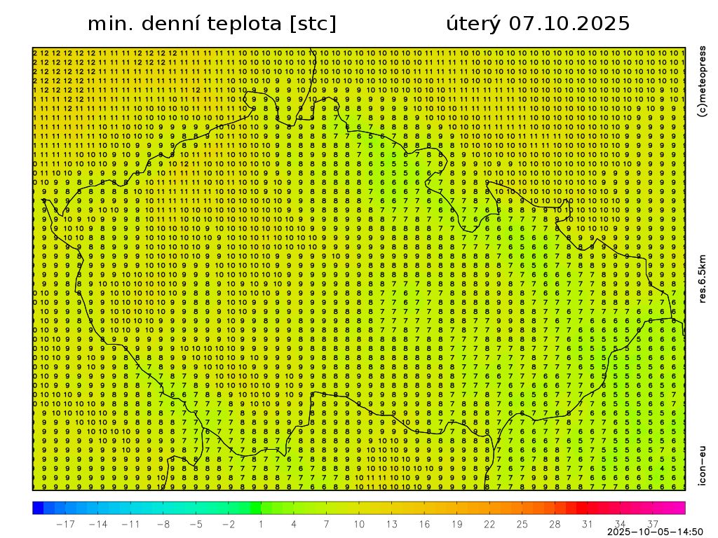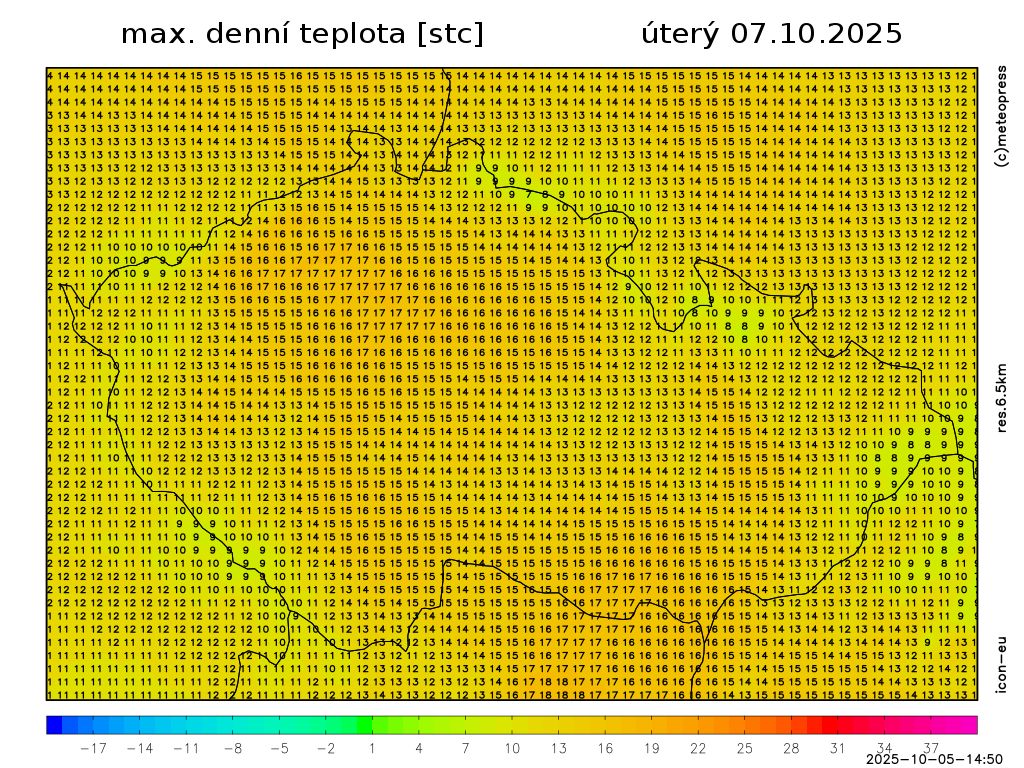 Nejvyšší denní teploty 11 až 17 °C. Teplota v 1000 m na horách kolem 7 °C. Foukat bude mírný severozápadní vítr.