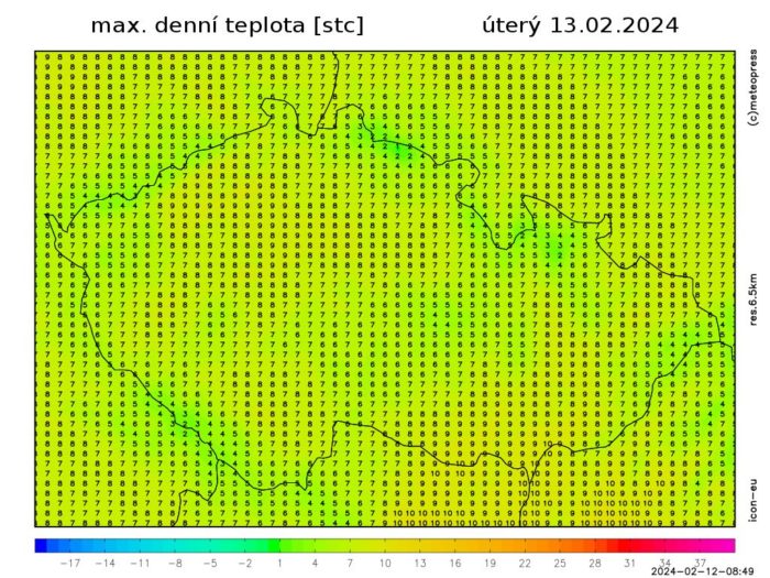 Nejvyšší denní teploty 5 až 10 °C. Teplota v 1000 m na horách kolem 2 °C. Foukat bude mírný severozápadní vítr, k večeru zeslábne.