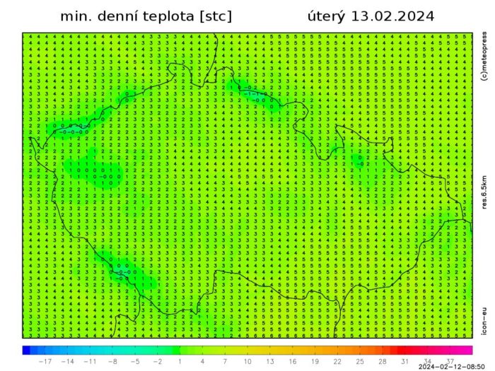 V úterý bude oblačno až polojasno, ojediněle slabé přeháňky, nad 800 m sněhové. Ranní teploty 5 až 0 °C.