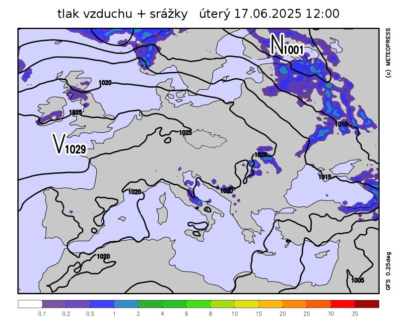 Počasí ve střední Evropě ovlivní tlaková výše nad Britskými ostrovy.