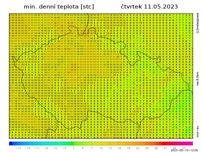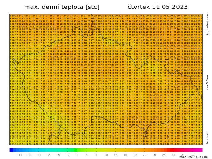 Nejvyšší denní teploty 16 až 20 °C, na západě a jihozápadě Čech kolem 14 °C. Teplota v 1000 m na horách kolem 11 °C. foukat bude slabý až mírný jihovýchodní vítr.