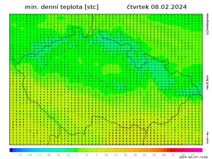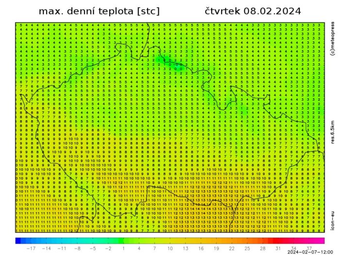 Nejvyšší denní teploty vystoupí na 2 až 7 °C, na jihu bude 7 až 12 °C. Teplota v 1000 m na horách kolem -1 °C, na jihu kolem 5 °C. Foukat bude slabý jihovýchodní, na jihu mírný jihozápadní vítr.