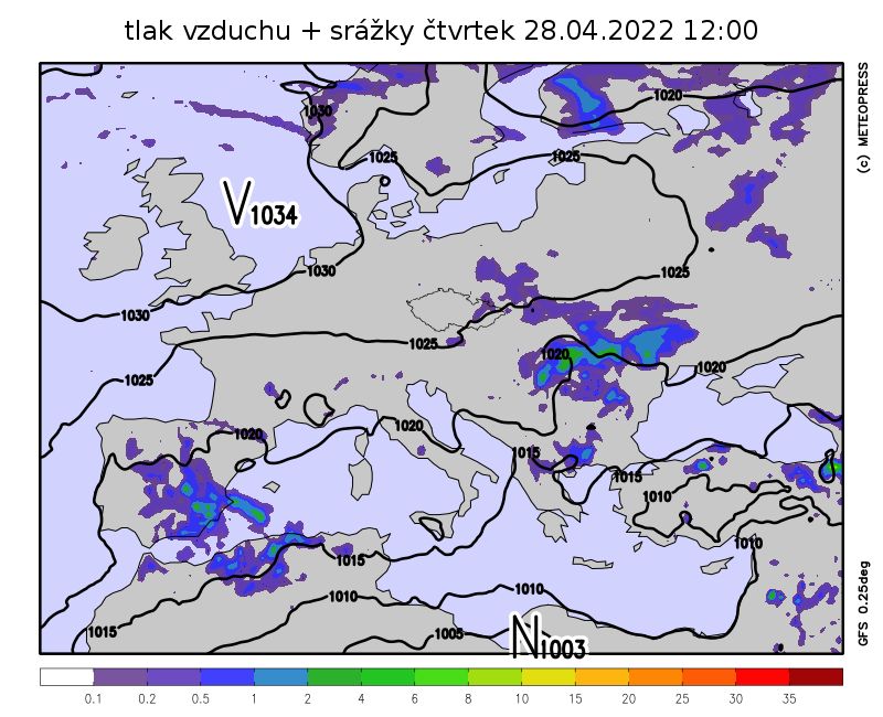Ve čtvrtek ubyde oblačnosti a vyskytnou se na severovýchodě ojediněle slabé přeháňky. Do střední Evropy se totiž rozšíří hřeben vysokého tlaku vzduchu od severozápadu. Ráno bude většinou chladné a mohou se objevit mlhy, odpoledne ale teploty vystoupí na příjemných 13 až 17 °C.