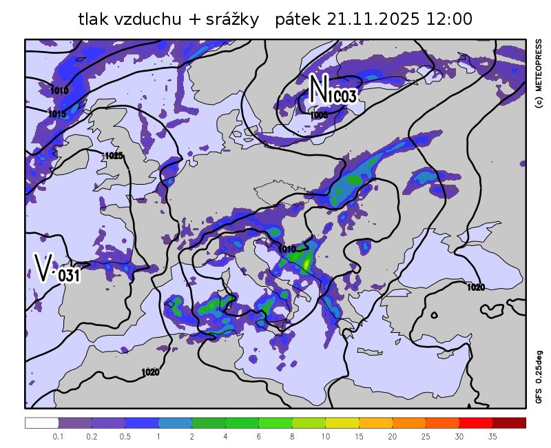 Počasí ve střední Evropě ovlivní od jihu tlaková níže.