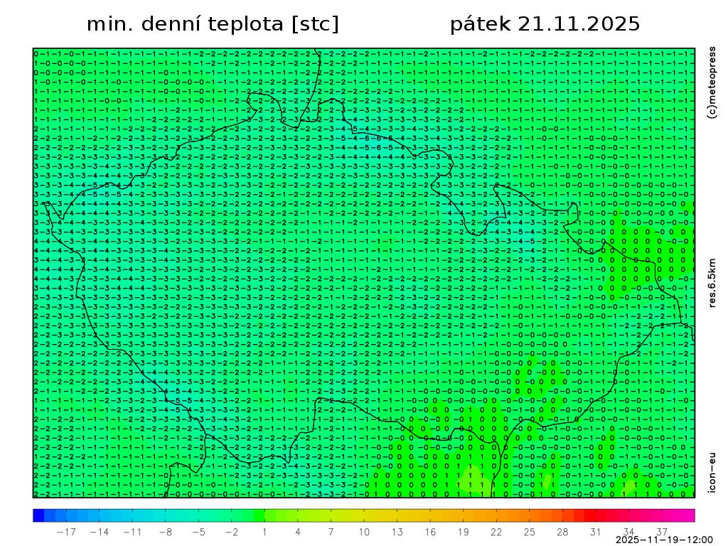 Nejvyšší denní teploty vystoupí na -1 až 4 °C.