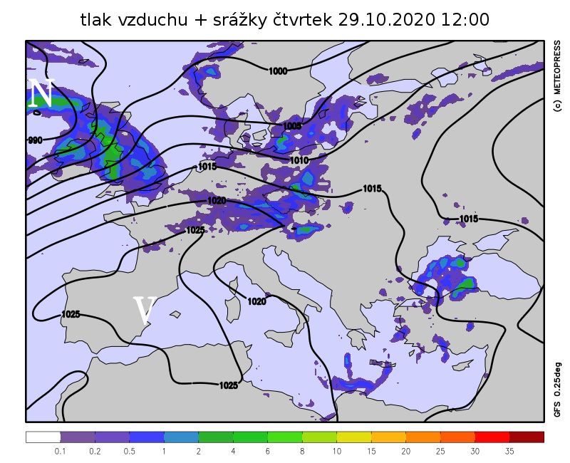 Ve čtvrtek bude počasí ve střední Evropě nadále ovlivňovat od severu okraj tlakové níže.