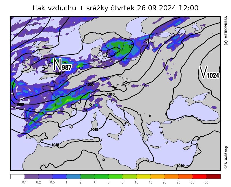 Počasí ve střední Evropě bude od severozápadu ovlivňovat tlaková níže.