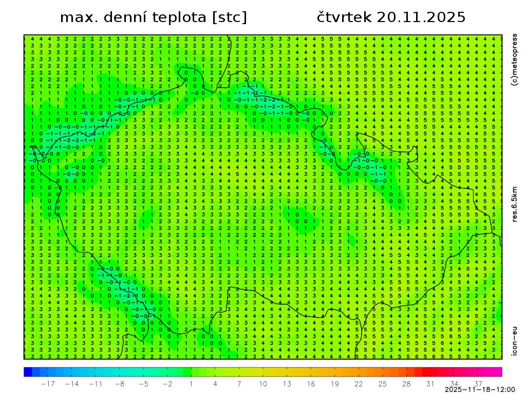 Nejvyšší denní teploty vystoupí na 0 až 5 °C.