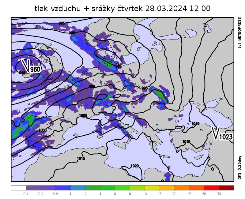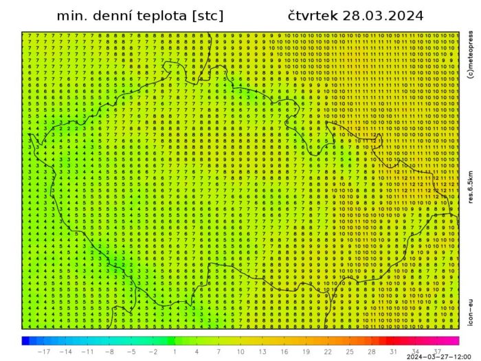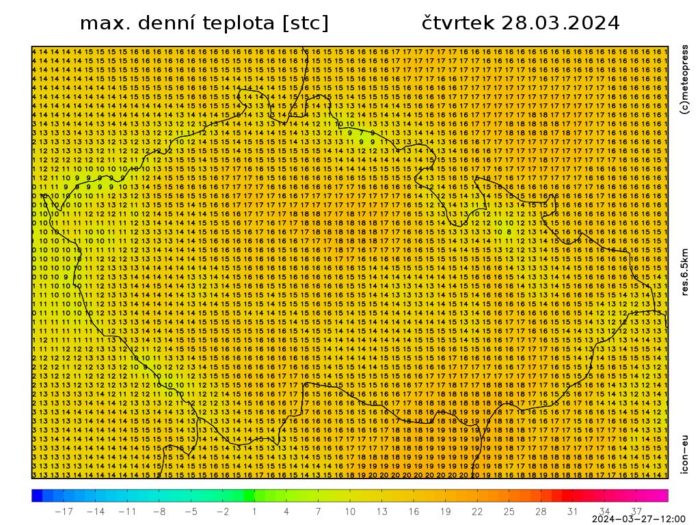Ve čtvrtek bude zpočátku zataženo až oblačno, místy déšť. Postupně přechodně od jihozápadu polojasno až jasno. Odpoledne od jihozápadu znovu přibývání oblačnosti a na většině území déšť nebo přeháňky, ojediněle bouřky. Nad 1000 m přechodně sněžení. Večer od západu ubývání oblačnosti. Ranní teploty 7 až 3 °C, východě kolem 9 °C.