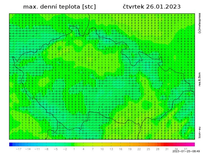 Nejvyšší denní teploty -2 až 2 °C. Teplota v 1000 m na horách bude kolem -5 °C. Vát bude slabý proměnlivý vítr nebo bude klidno.