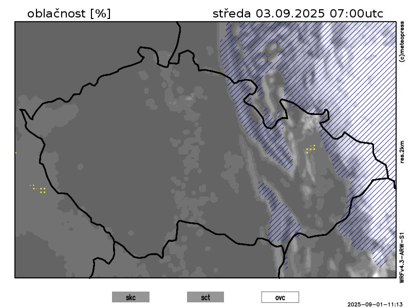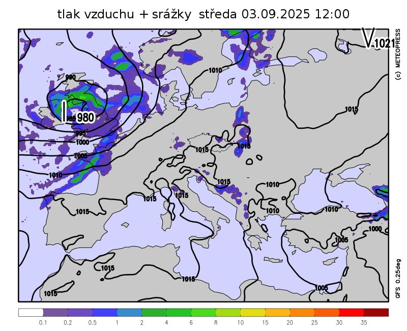 Počasí ve střední Evropě ovlivní výběžek vyššího tlaku vzduchu od západu.