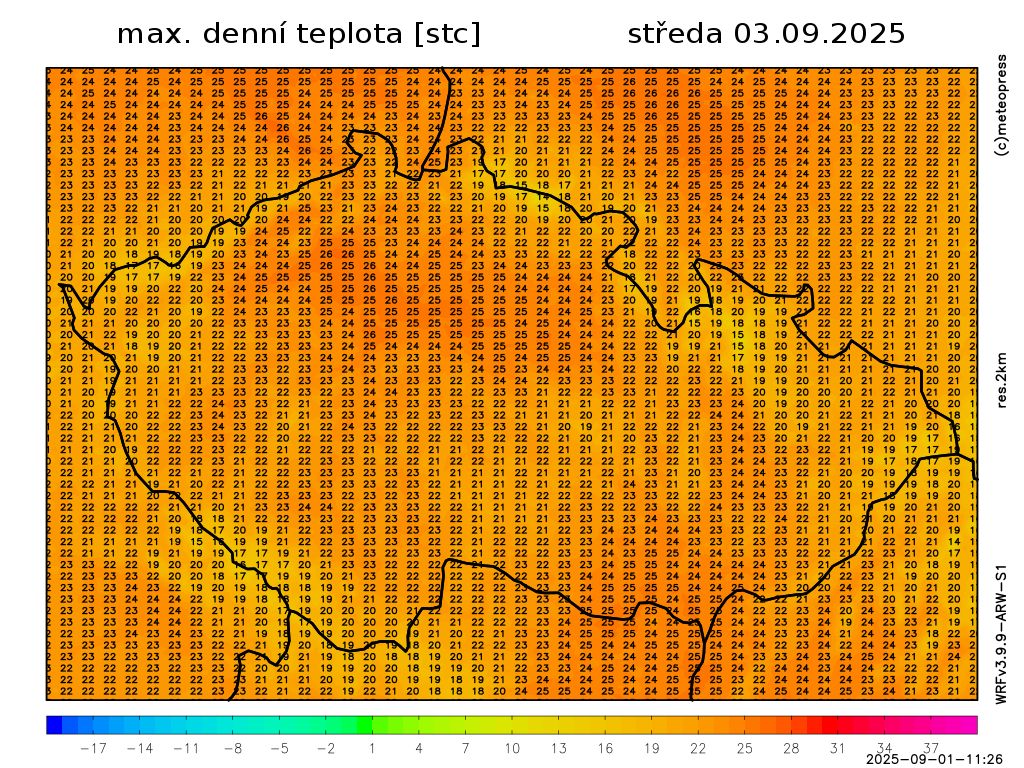 Nejvyšší denní teploty vystoupí na 21 až 26 °C.