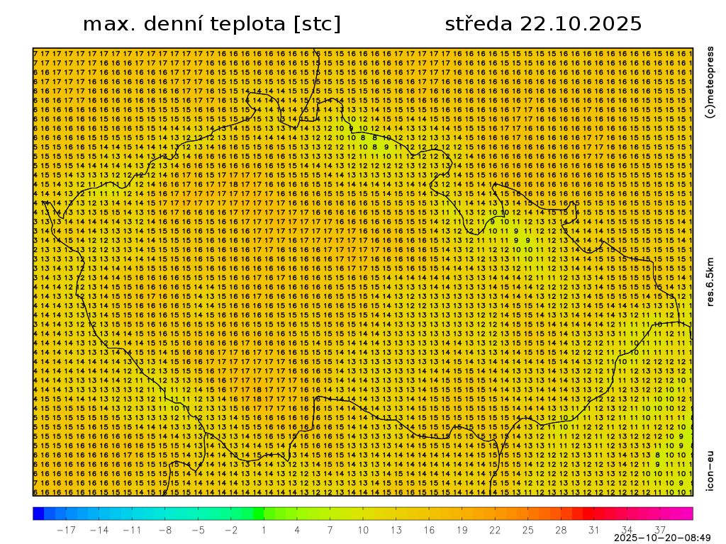 Nejvyšší denní teploty vystoupí na 13 až 17 °C. Teplota v 1000 m na horách kolem 9 °C. Foukat bude mírný jihozápadní vítr.