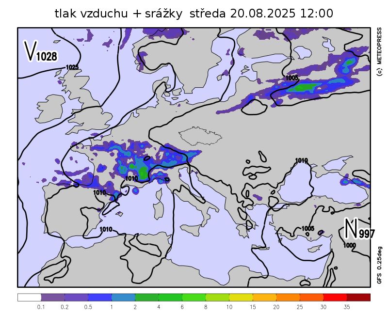 Počasí ve střední Evropě začne ovlivňovat nevýrazná brázda nízkého tlaku vzduchu.