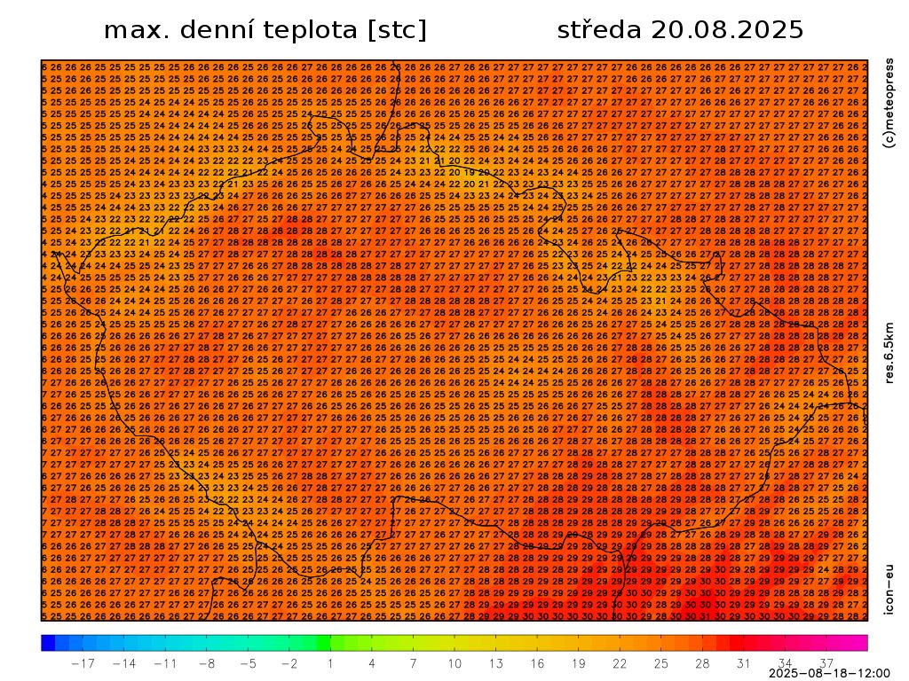 Nejvyšší denní teploty 25 až 30 °C. Teplota v 1000 m na horách kolem 21 °C. Foukat bude slabý severozápadní vítr.