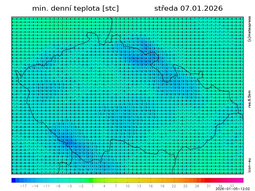 Ve středu bude polojasno až oblačno, ráno na severozápadě ojediněle sněžení. Během dne v Čechách až polojasno. Ranní teploty -7 až -13 °C, ojediněle až -15 °C.