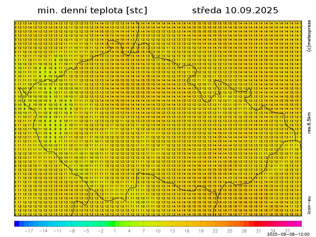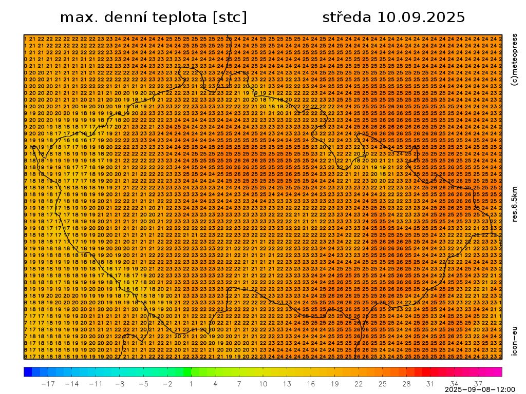 Nejvyšší denní teploty vystoupí na 22 až 26 °C, na západě Čech naměříme jen okolo 19 °C. Foukat bude slabý až mírný jihovýchodní vítr.