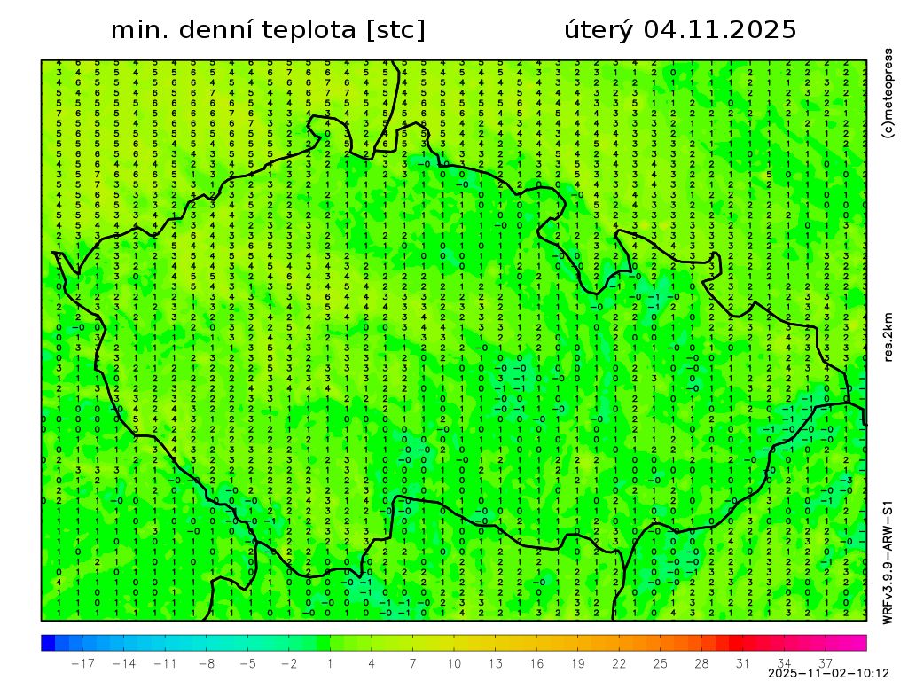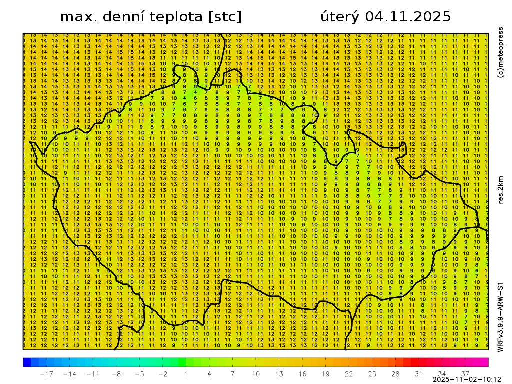 Nejvyšší denní teploty vystoupí na 9 až 13 °C. Teplota v 1000 m na horách kolem 7 °C. Foukat bude slabý až mírný jihozápadní vítr.
