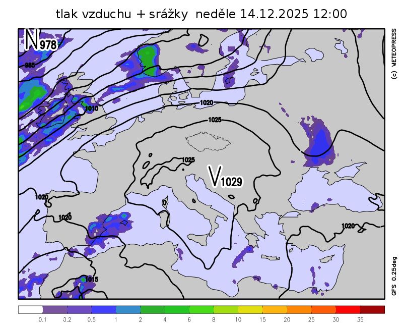 Nad střední Evropu se bude udržovat oblast vysokého tlaku vzduchu.