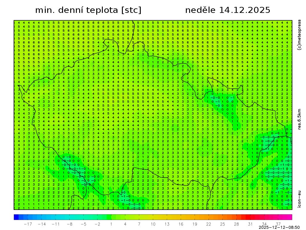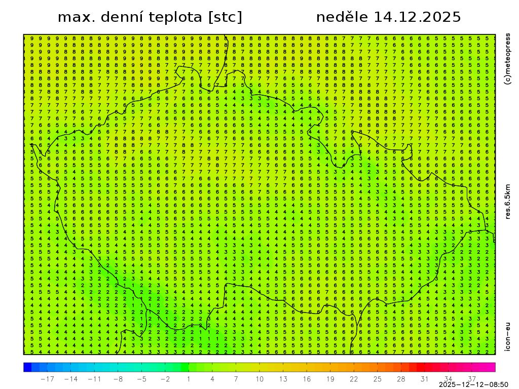 Nejvyšší denní teploty 3 až 8 °C. Foukat bude slabý vítr západních směrů.