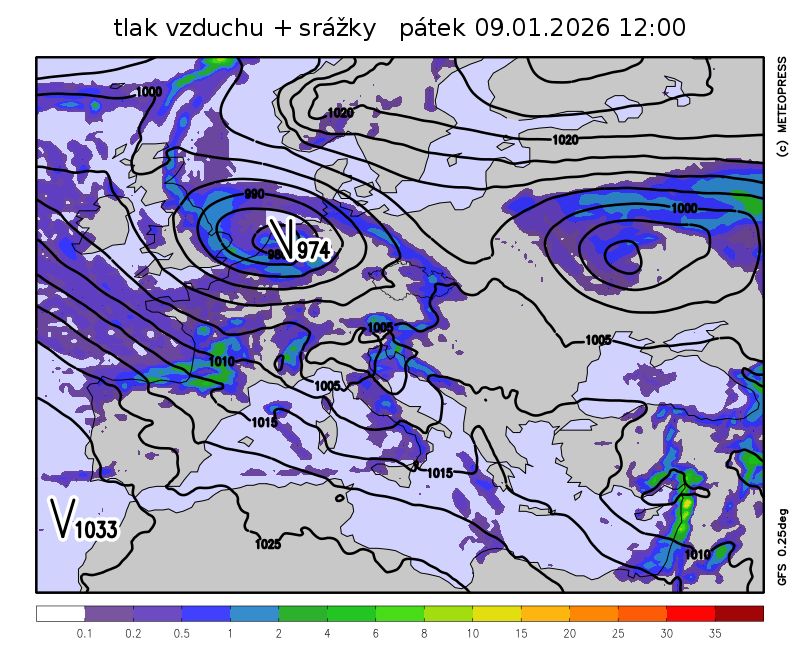 Počasí ve střední Evropě ovlivní teplá fronta.