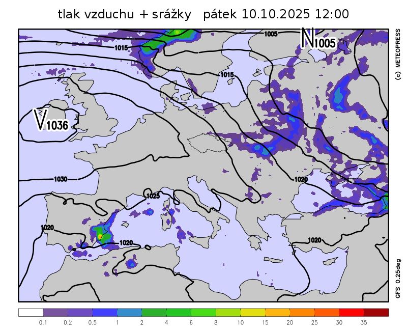 Kolem tlakové výše nad Britskými ostrovy bude do střední Evropy proudit chladnější vzduch od severozápadu.