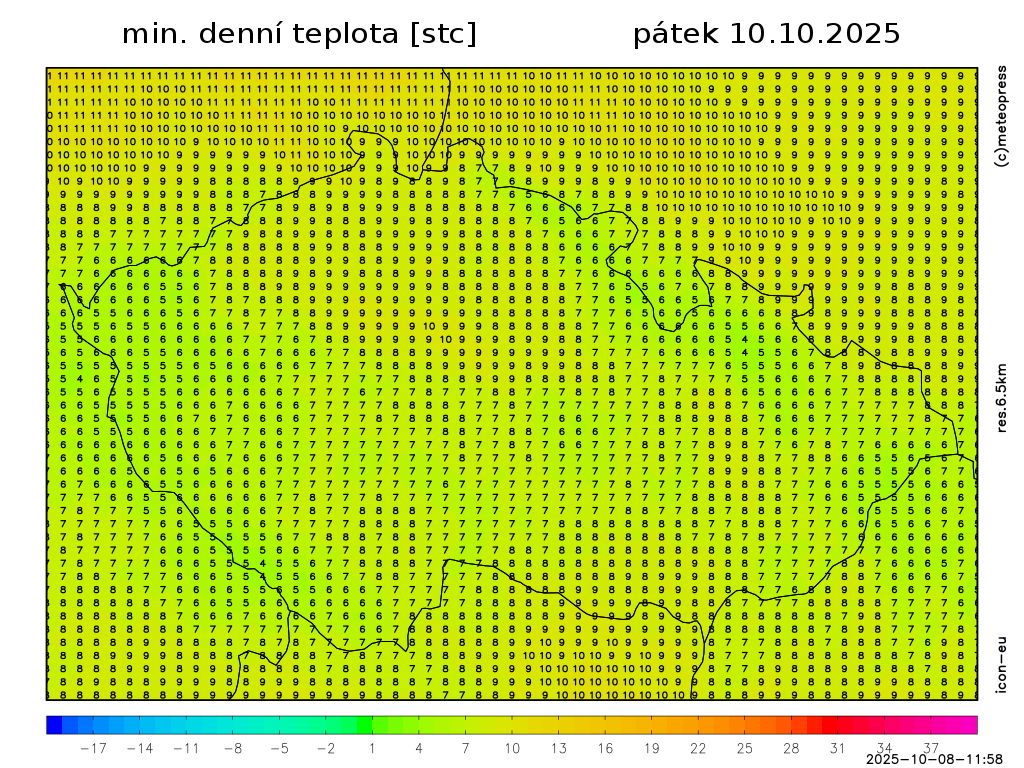 V pátek bude oblačno až zataženo, ojediněle, na severovýchodě místy déšť nebo přeháňky. Na západě během dne až polojasno. Ranní teploty 9 až 5 °C.