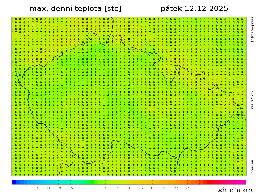 Nejvyšší denní teploty 2 až 6 °C, při slunečném počasí až 8 °C. Foukat bude slabý proměnlivý vítr.