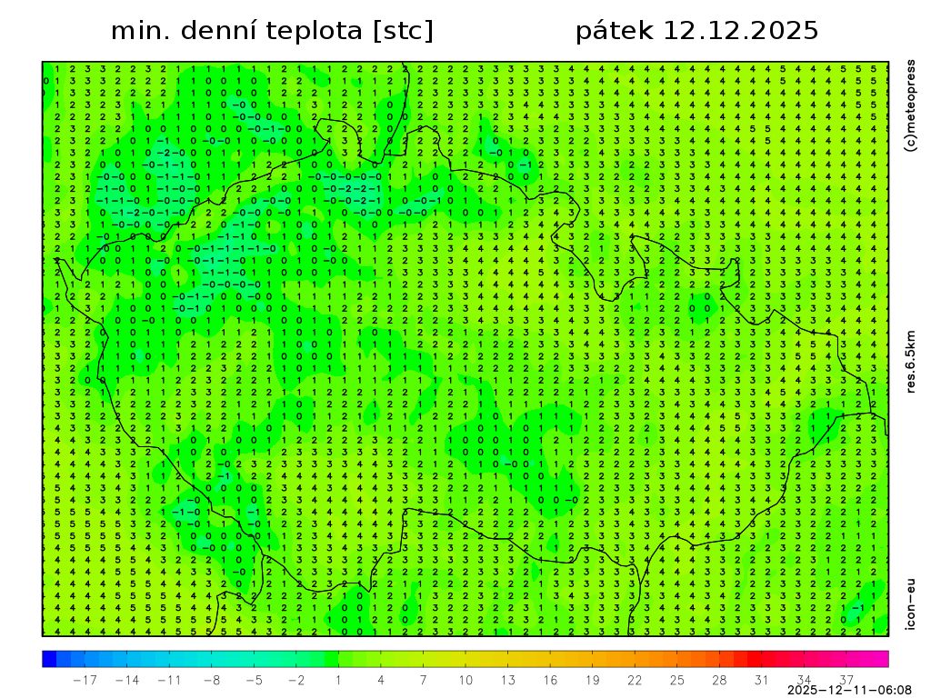 Ranní teploty 4 až -2 °C.