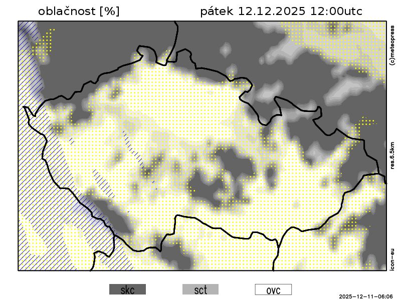 V pátek bude zataženo nízkou oblačností, mlhy, ojediněle jasno až polojasno, zejména ve Slezsku.