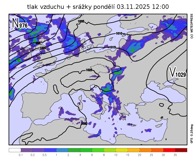 Za zvlněnou studenou frontou se do střední Evropy rozšíří tlaková výše od jihozápadu.
