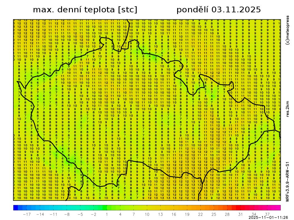 Nejvyšší denní teploty vystoupí na 8 až 12 °C. Teplota v 1000 m na horách jen okolo 3 °C. Foukat bude mírný až čerstvý severozápadní vítr.