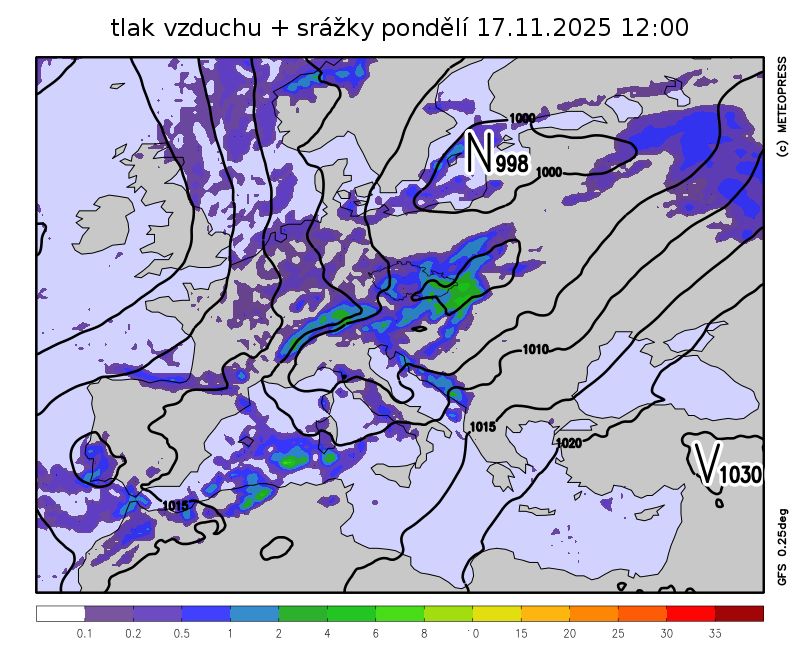 Počasí ve střední Evropě ovlivní od severozápadu zvlněná studená fronta.