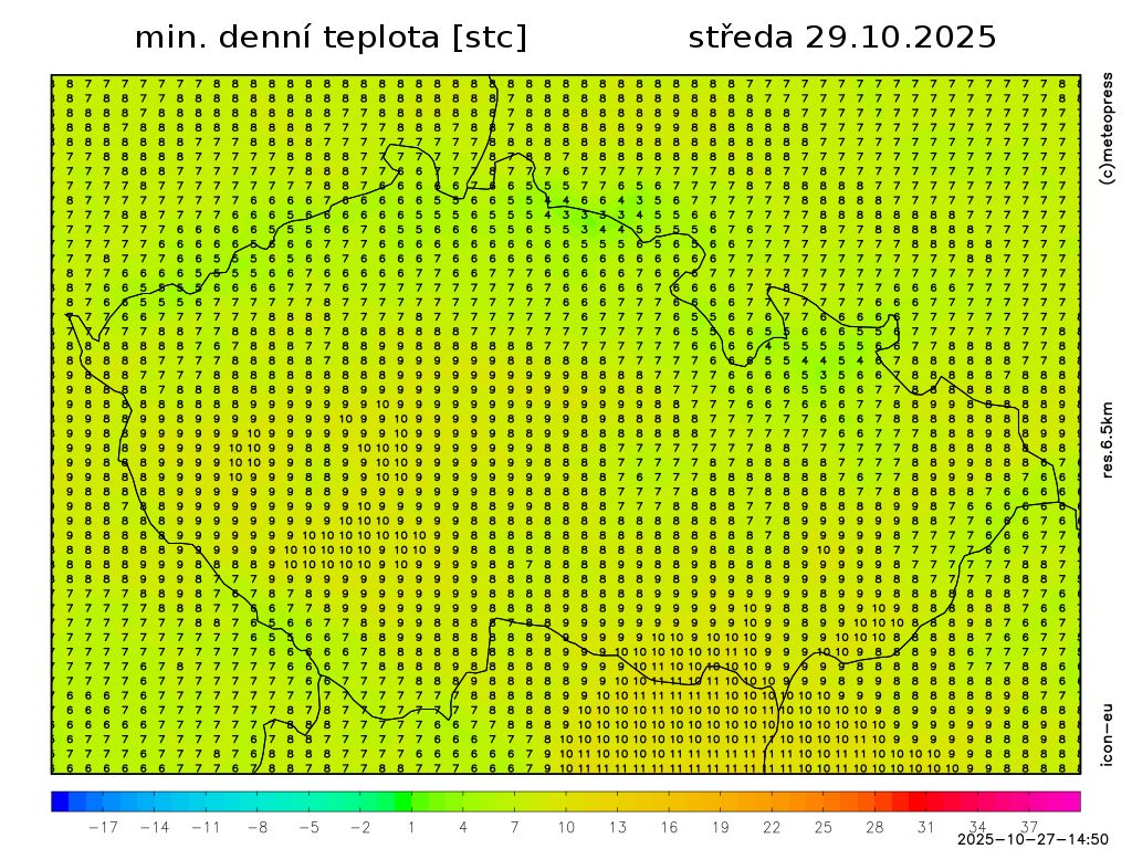 Ve středu bude polojasno až oblačno, ráno a dopoledne místy mlhy nebo nízká oblačnost. Ranní teploty 10 až 5 °C.
