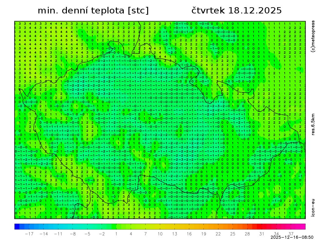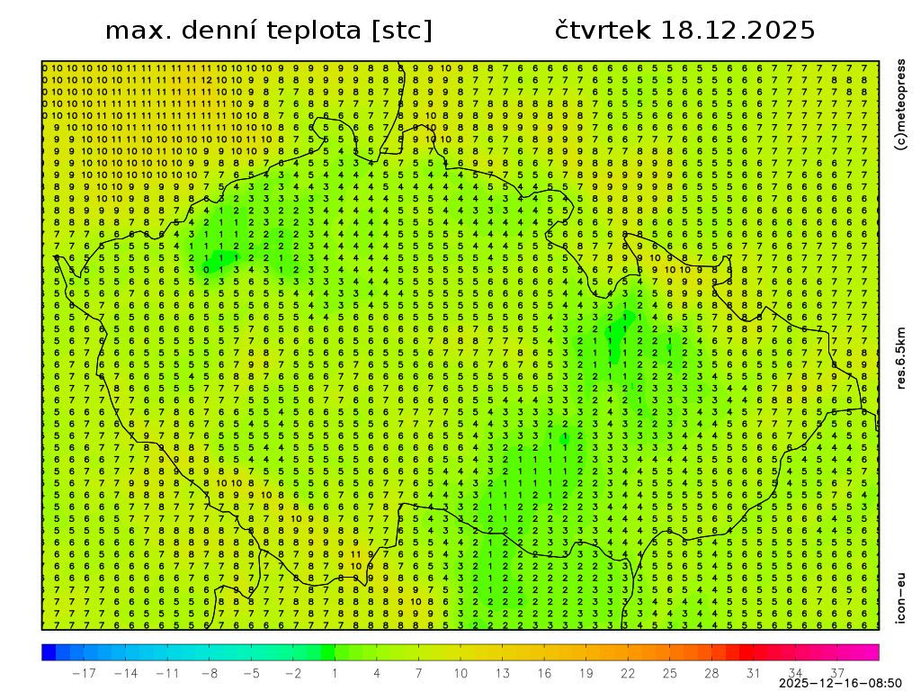Nejvyšší denní teploty vystoupí na 5 až 10 °C, při mlze naměříme jen kolem 1 °C. Teplota v 1000m na horách kolem 5 °C. Foukat bude slabý až mírný vítr jižních směrů.